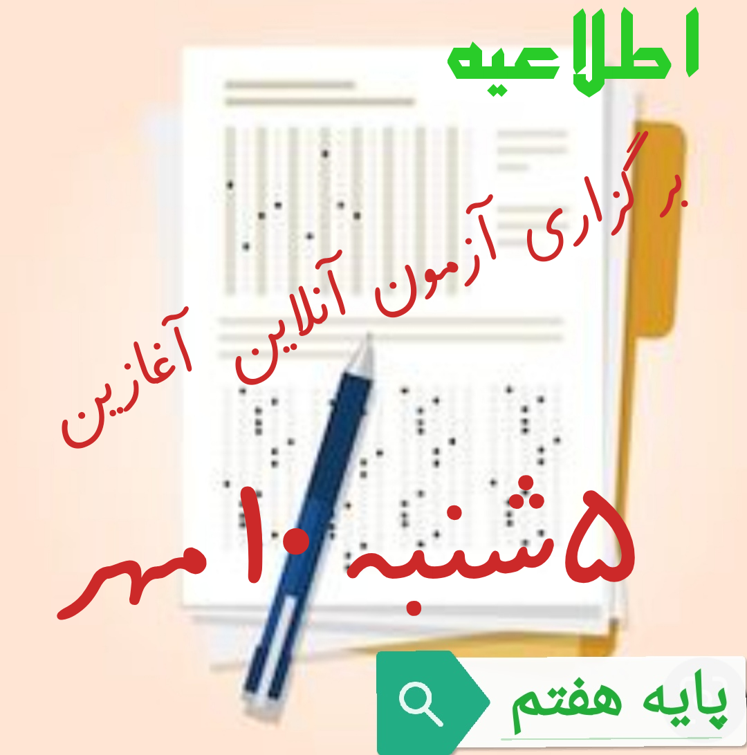 دانش اموزان عزیز هفتم آزمون آغازین به صورت انلاین از سه درس ادبیات ریاضی و علوم